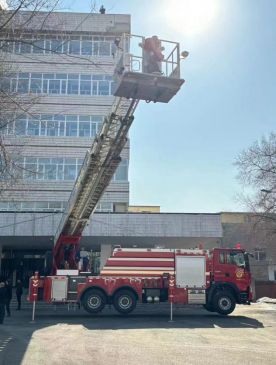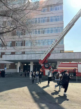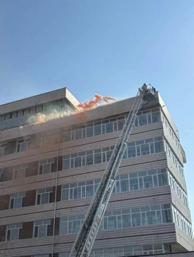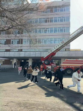 演练开始前,负责人介绍了逃生注意事项和方法。上午九点,消防演习正式开始。随着警报声响起,老师迅速组织疏散学生,其他工作人员也在第一时间赶到自己当时所在楼层拐角处配合疏散学生。各班学生在老师们的指挥下,弯着腰,猫着步,用手帕、毛巾等捂住口鼻,沿着指定楼梯口快速前进,有序撤离到学校操场的安全地带。同时,消防人员搭乘云梯车,解救高空被困人员,确保火灾内人群全部安全撤离。