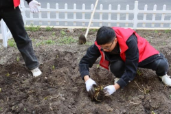活动开展前,药学院学生党员们统一身着志愿者服装,佩戴党徽,彰显了药学院学生党员积极进取的精神状态和朝气蓬勃的精神风貌。活动开展期间,首先由老师讲解金钱草和芍药的药用特性和生长环境,使学生了解到金钱草具有活血化瘀、舒筋活络、消肿止痛等功效,芍药具有养肝护肝、散郁祛瘀、清热解暑等功效。然后党员们进行合理分工,在搬运中草药植株、刨土、实际栽种等环节协同一致,互相配合,依据不同的中草药材的不同生长习性进行科学的学习后栽种,高效率高质量完成了草药种植任务。