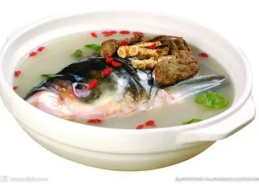 每日用量:鲤鱼1条(约1500克),天麻50克,川芎10克,茯苓10克,葱,姜,水豆粉,白糖,食盐,胡椒面,香油各适量。