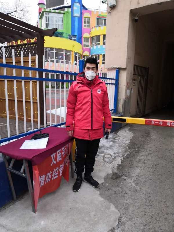 “抗战疫情,尽展青春底色。”家住黑龙江省齐齐哈尔市建华区的高铭泽同学是药学院2017级药学二班的一名共青团员。随着新型冠状病毒的蔓延,齐齐哈尔市也出现了部分患者与疑似病例,他毫不犹豫地参加了齐齐哈尔市建华区锦湖社区的志愿活动,并担任住户排查员一职。灾难无情人有情,在日益严重的病毒灾难面前,他全心投入到社会服务之中,排查老旧小区,登记住户。在排查过程中,他排查了四栋楼房,每栋四个单元,一共八层。遇到没有电梯的楼房,他只能徒步上楼,有的房间没人,他还要帮忙贴上封条,连续地爬楼梯,挨家挨户敲门。长时间地工作,汗水浸透了他的外套和棉帽,长时间地戴口罩上下楼,也难免感觉到呼吸困难,时常捱到体力不支也不去休息。世上没有从天而降的英雄,只有像高铭泽一样挺身而出的朴实的凡人。他和我们一样,也是普通人,但他默默奉献,无怨无悔,用一颗红心去践行自己的使命。高铭泽:“星星之火, 可以燎原,每个人做到点滴,没有任何灾难能把我们打倒。”