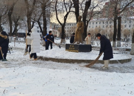 除雪现场,志愿者们干劲十足、不畏严寒、通力协作、斗志昂扬!一个个挥舞着清雪工具的身影,一声声响亮有力的口号,都是严冬一道亮丽的风景线。