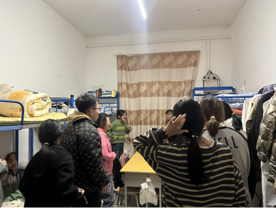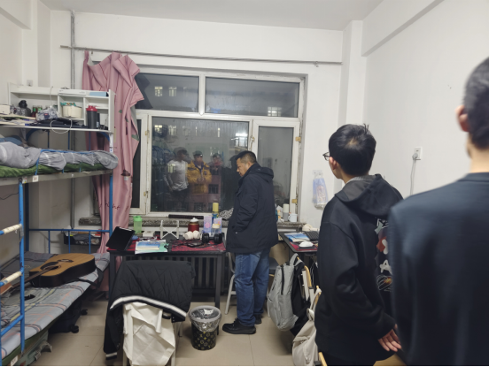 走进宿舍,同学们的日常生活细节也备受关注。古万军书记仔细查看宿舍的设施设备,关心同学们在生活中的需求是否得到满足。从门窗防风性到水电的使用情况,无一遗漏。辅导员们与同学们亲切交谈,询问饮食是否习惯、作息是否规律等。对同学们在生活中遇到的小烦恼,辅导员们认真倾听并给予温暖的回应,让同学们在远离家乡的校园里也能感受到家的温馨,如同细密的网线,将关怀紧紧编织在每一位同学身边。