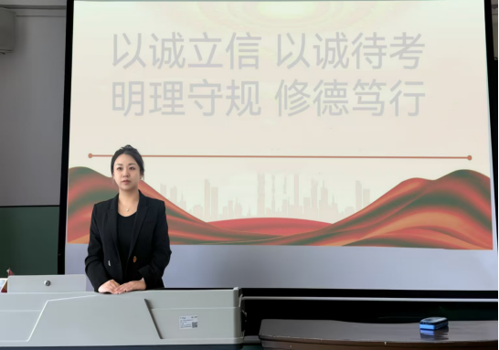 遵规守纪强风尚,以信立人筑青春。李莹老师会上首先强调了期末考试的重要性和严肃性,指出考试不仅是对学生学业水平的检验,更是对学生品格和诚信品质的考验。其次,详细说明了考试违纪行为和作弊行为的认定,以及相应行为会造成的处分类型,讲述了考试违纪违规行为的典型案例,警示教育学生知底线、守底线,端正考风考纪,推崇诚实、公平的考试态度,坚决杜绝任何违纪违规行为发生。最后,提醒同学们一定要积极备考,严肃考风考纪,发出诚信应考倡议,并祝愿全体学生顺利通过考试,取得优异成绩!
