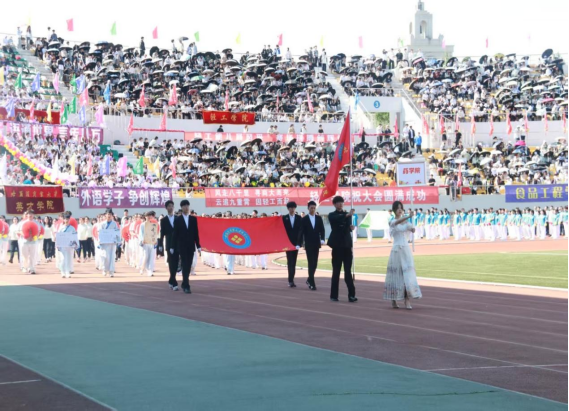 药学院表演队伍精神饱满、眼神坚定、身姿挺拔、动作利落,展现了我院学子的良好精神面貌与蓬勃朝气。运动会以一种别样的形式记录着我们肆意飞扬的青春与明亮欢快的日子。