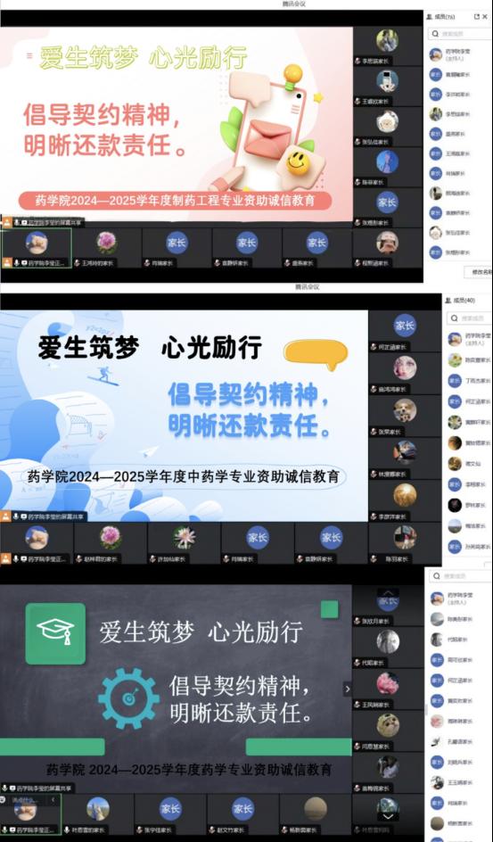 药学院时刻紧抓资助育人工作落实,加强对受助学生的诚信教育、感恩教育、励志教育,呼吁学子以感恩之心待人,以励志之志律己。药学院各年级特于2025年5月30日至6月3日组织召开以“倡导契约精神,明晰还款责任”为主题的线上线下年级大会。