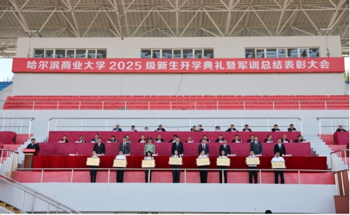 以军训之名,冠青春华章,以军训之声,诉爱国之情,以军训之魂,谈报国之志。2025年9月13日,我校在体育场召开了2025级新生开学典礼暨军训总结表彰大会。我校党委书记赵广,党委副书记、校长李景义;中国人民解放军71375部队副政委孟令波;我校党委副书记、工会主席田成义,党委副书记姜国峰,党委常委、副校长王福友,党委常委、纪委书记卢伯松,党委常委、副校长修国英,校长助理欧忠辉出席大会。校直各单位党政负责人、各学院党委副书记、2025级新生辅导员及全体新生参加典礼。田成义主持典礼。