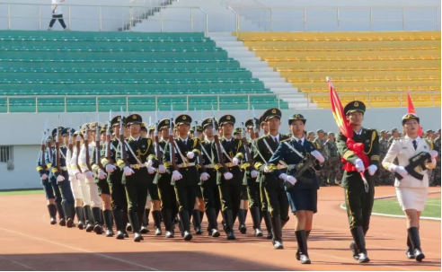 大会伊始,国旗队入场,他们目光如炬、身姿挺拔、步履铿锵、气宇轩昂!整齐划一的步伐彰显着青春的蓬勃力量,鲜艳的五星红旗在他们手中迎风招展。全体师生肃立,行注目礼,激昂的国歌声响彻体育场,爱国之情在每个人的心中激荡。随着最后一个旋律的落下,军训汇演就此拉开帷幕。