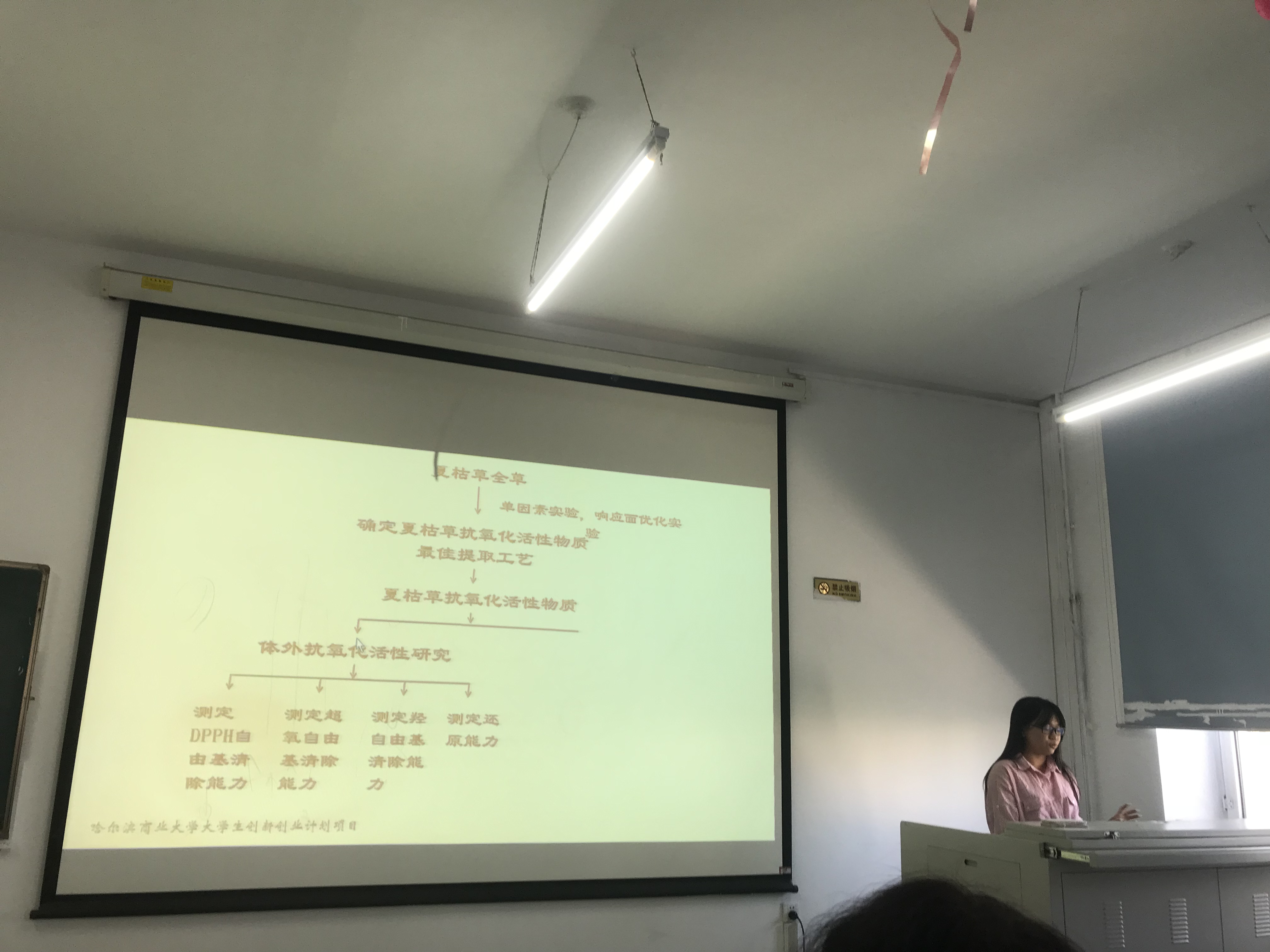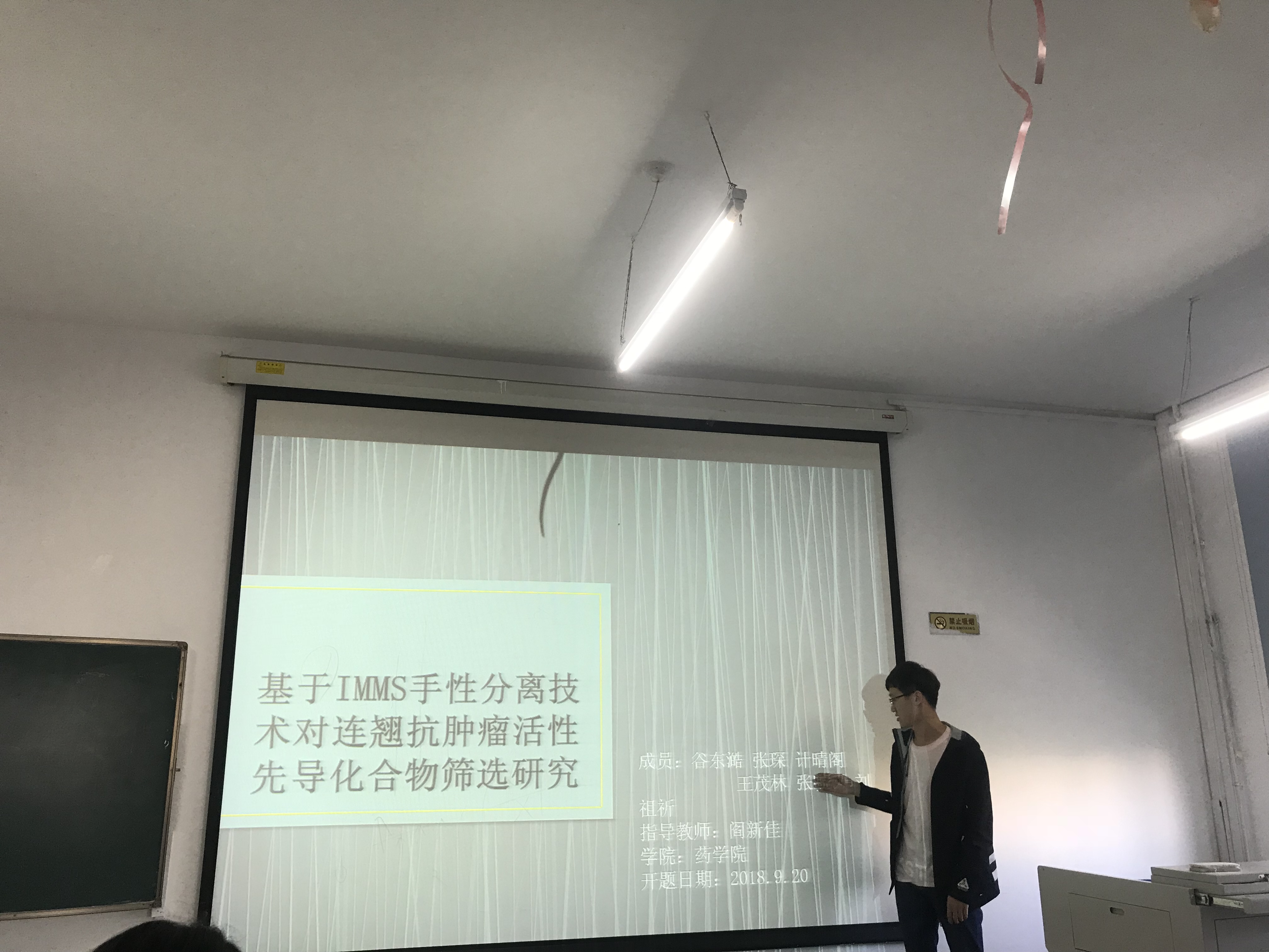 根据《关于公布2013年黑龙江省大学生创新创业训练计划立项结果的通知》(黑教高函〔2013〕287号)和《哈尔滨商业大学大学生创新创业训练计划项目管理办法(试行)》(哈商大[2012]83号)等文件精神,为积极推进该计划的实施,我院于2018年9月20日12:00在药学院407多功能室进行了2018年大创项目的开题答辩工作。七个项目的课题组成员、指导教师及部分药学院师生参加了本次开题答辩。