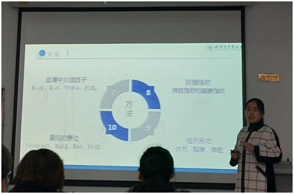“新思路、新视野”青年研究者论坛系列活动为药学院的学术系列活动之一,论坛活动以药学院青年教师、研究生及本科生科研创新小组为主体,每期设有不同的主题,以论坛为平台,通过分享经验、学术交流、学术研讨达到拓宽科研思路,开阔科研视野目的。2019年4月10日上午在药学院实验楼407,吕春艳博士与学院师生一起分享了“类叶牡丹中皂苷与生物碱组分配伍治疗类风湿关节炎的机制研究”研究报告。