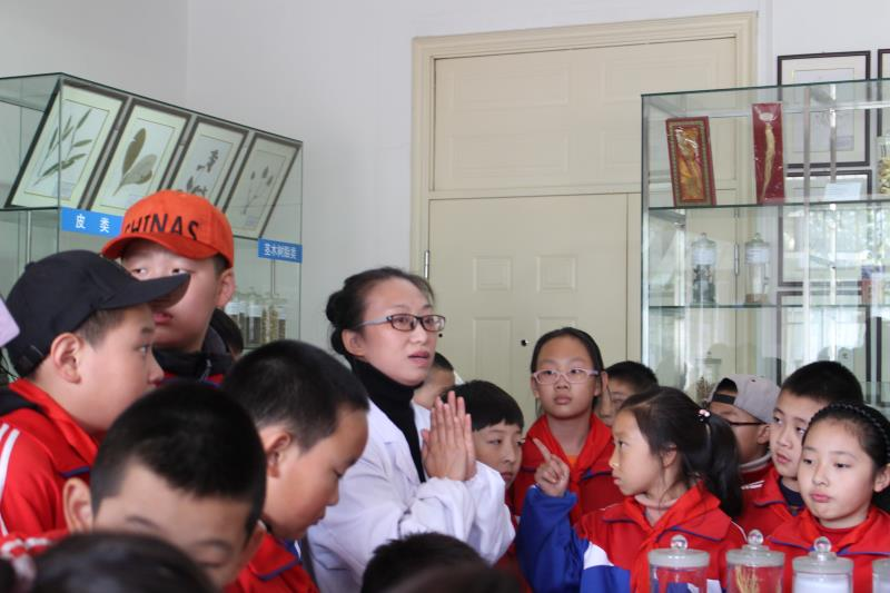请进校园,宣扬本草。2019年10月21日道里区抚顺小学师生走进药学院中药标本馆参观。我院教师党员开起了为期一周的志愿讲解活动。标本馆以“回”字型构造,700余种中药标本陈列其中,为中药知识的普及和中药鉴定的学习提供了良好的资源条件。馆内展出的颜色各异、质地不同的土,是由历届药学院学生所带来的家乡适合不同中草药生长的土壤,其中蕴含了历届学生的爱校之情和传承中医药文化的矢志不渝之心。此次志愿服务,由我院张天雷、张茹、张乔三位教师负责讲解。根据小学生的学习特点,在专业内容中融入典故、传说等形式,例如生药红景天的用药部位、东北地区特产的珍贵梅花鹿标本及在无土无光环境下仍顽强生存两年之久的石斛等,将小学生们带入了一场中药知识的盛宴。