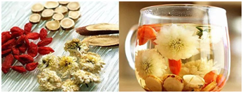 每日用量:黄芪15克,白术5克,枸杞10,菊花5克(或1朵)。开水冲服,代茶饮。