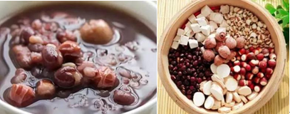 每日用量:红豆80克,薏米/芡实50克,莲子(去芯)20克,小米20-30克,适量红糖或冰糖。做早晚餐服。(孕妇者宜将薏米改为芡实;糖尿病者不加糖。)
