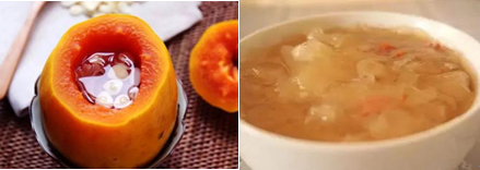 每日用量:银耳15克,番木瓜1只,冰糖适量。(外感风寒,糖尿病患者忌服)