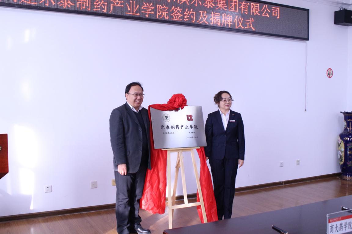 张林副校长、马宇辉副总裁为乐泰制药产业学院揭牌