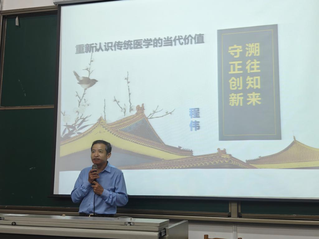 新学期伊始,在习近平总书记赴黑龙江考察的重要讲话、重要指示精神指引下,药学院开展了“开学第一课”系列活动。程伟教授应邀以《重新认识传统医学的当代价值》为主题,为药学院师生进行了首期讲座。