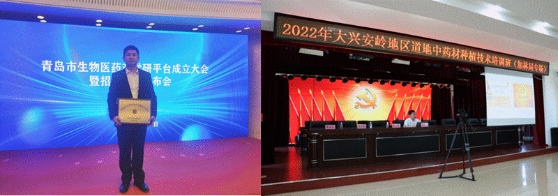 2022-2024年度,他作为省级科技特派员送技下乡,助力乡村振兴,多次赴大兴安岭地区等多地进行科技指导扶持活动,解决企业发展技术瓶颈问题,包括推动龙江水飞蓟、松衫灵芝、兴安杜鹃健康产业化发展等。作为黑龙江省野生药材资源保护中心专家,近年来多次赴大兴安岭地区、伊春、齐齐哈尔、牡丹江、鸡西、哈尔滨辖区县等地,进行实地调研和技术培训,对我省道地中药材种植、质量评价、开发利用等进行专业指导与业务培训,助力提升龙江道地药材质量标准和品牌效应。