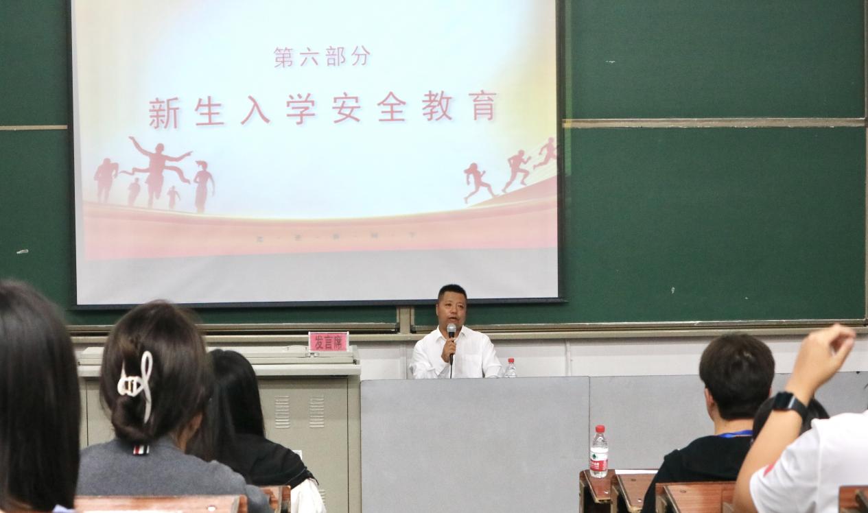 党委副书记古万军高度重视学生在校安全,从国家安全、网络安全、心理健康安全、人身安全、财产安全、宿舍安全、交通安全、消防安全、食品安全等方面进行解读,结合真实案例讲述身边存在的安全隐患、安全事故,让学生树牢安全观。随后进行军训动员,并提出了3点要求,一要深刻领悟军训意义,心怀天下、矢志报国;二要牢固树立集体观念,严守纪律、团结协作;三要严格遵守规章制度,训练到位、安全为先。希望全体参训学生以奋斗的品质、坚韧的毅力,平安、顺利、圆满地完成军训任务。