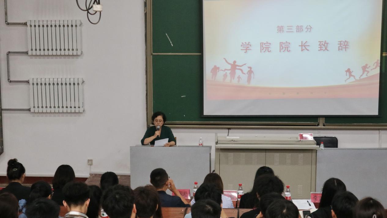 院长李文兰代表学院向新同学的到来致以诚挚的欢迎,详细介绍了学院的发展历史、学科特色、师资团队等方面的情况,强调新生要在大学期间脚踏实地,努力学习,自律自强,并提出了四点希望,一要立大志,用“梦想”照亮人生,鼓励新生树立远大志向,以时代楷模为榜样,在拼搏奋斗中绽放青春光芒;二要明大德,用“善行”滋养人生,教导新生要积小善而成大德,成为一名有文化、有道德、有品行的人;三要成大才,用“奋斗”书写人生,激励新生只有奋斗才能书写绚丽青春,越努力,才会越幸运;四要担大任,用“勇毅”成就人生,祝愿新生面对挫折时淡定从容,在艰难困苦中学会坚强,在砥砺奋进中勇毅前行。