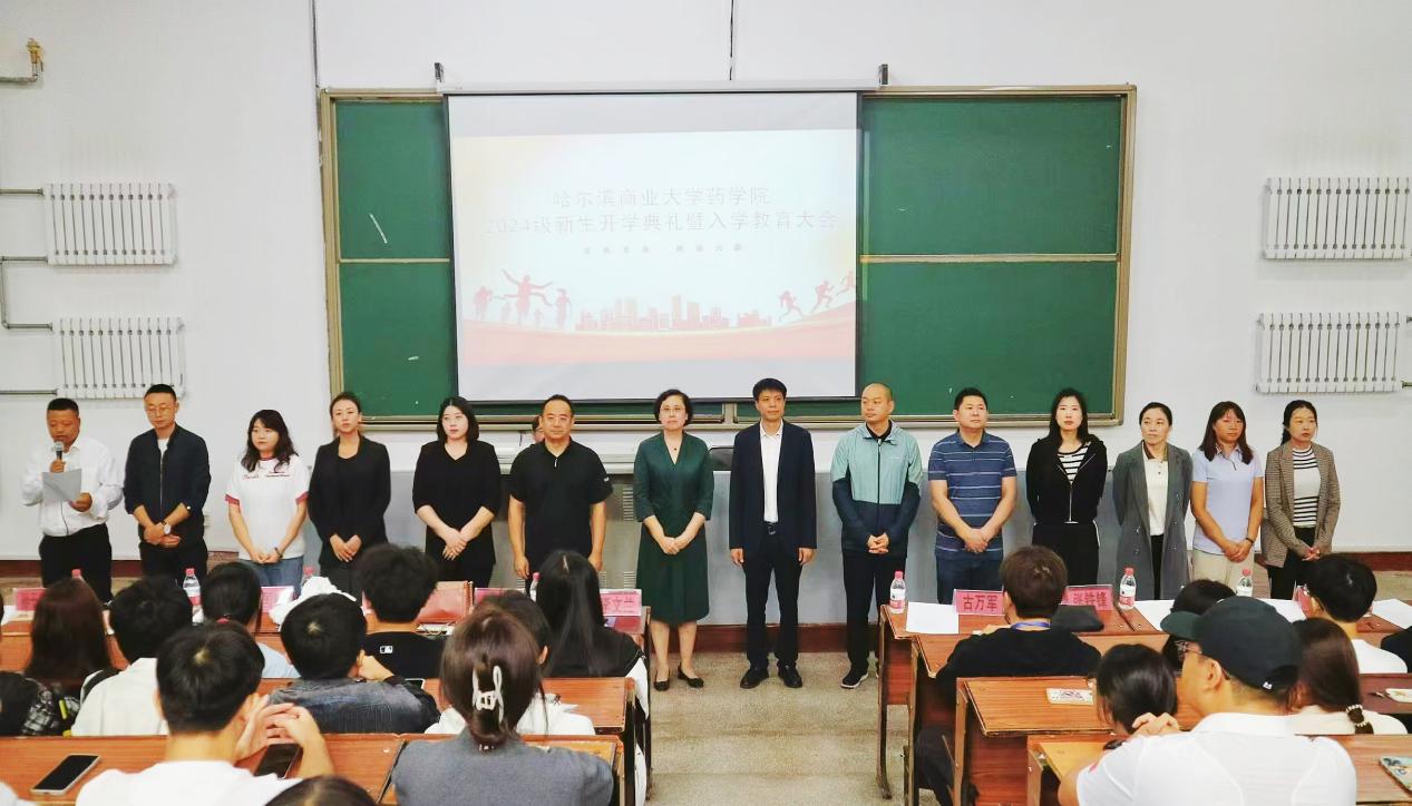 金秋送爽喜迎八方学子,丹桂飘香共谱崭新篇章。为全方位、多角度地引导2024级新生尽快融入大学生活,明确学习目标,激发个人潜能,促进全面发展,9月1日14时,药学院2024级新生开学典礼暨入学教育大会于南区综合楼J021室隆重举行。党委书记张铁锋,院长李文兰,副院长杨波、汲晨锋,药物工程技术研究中心副主任高世勇、邹翔,教学科研秘书梁伟、杨悦、崔迪、辛国松,各级辅导员杨晓旭、孙于贝妮、李莹、吴仙笛及全体2024级新生参加此次大会。会议由党委副书记古万军主持。