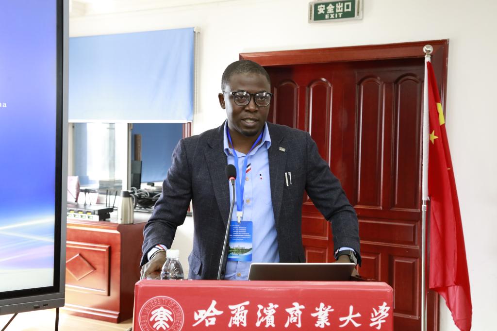 来自坦桑尼亚的2021届哈尔滨商业大学毕业生史蒂芬作为学员代表发言
