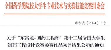 由全国药学类院校大学生专业技术与实验技能竞赛组委会主办的“东富龙-国药工程杯”第十二届全国大学生制药工程设计竞赛公布了竞赛结果,本次竞赛共有180所高校提交了384件有效参赛作品,择优评选出28件入围全国总决赛的作品,同时还评选出126件拟授二等奖作品。哈尔滨商业大学药学院师生组成的“药不药我们都队”参赛队伍(指导教师:吕江维、崔闻宇;参赛学生:冯丹妮、余科彻、黄晨曦、段奇凡、马星霓、韩慧缃)荣获二等奖。