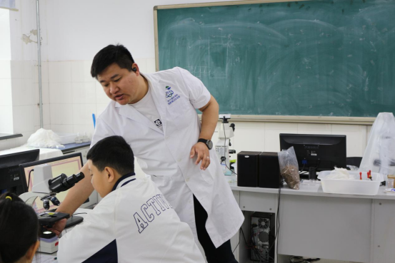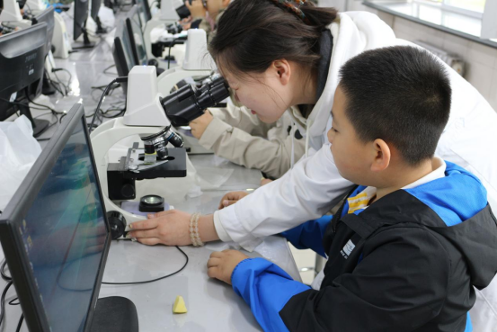 在多媒体显微互动教学实验室,赵世成老师和志愿者们手把手指导孩子们制作土豆、洋葱临时装片,通过数码显微镜观察植物细胞。"同学们看,这些排列整齐的细胞壁,就像我们团结一心的集体;叶绿体的运动,正是生命活力的体现。"通过将细胞结构与团队精神巧妙结合,让微观世界的科学知识充满温度。
