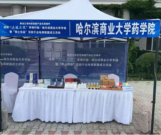 在全省上下深入贯彻落实《黑龙江省科技成果产业化突破年行动方案》之际,哈尔滨商业大学全面贯彻落实省委、省政府有关部署要求,举办“三进三促”系列活动,加速高校科技成果向现实生产力转化。活动现场设立高校科技成果转化“三进三促”专题展览,我院签订校企科技成果合作协议2项,李文兰教授与大兴安岭超越野生浆果开发有限责任公司、郎朗研究员与乐泰药业有限公司签订校企科技成果合作协议。在展览中,学院展示了研发的中药、保健食品、药食同源保健产品等数十款产品,充分展示了学院在中医药科学研究、平台建设、成果转化等方面取得的成绩。