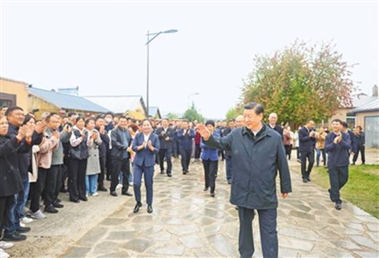 离开小院时,当地群众在道路两旁热情欢送总书记。习近平亲切地对大家说,北极村前景可期。希望广大干部、群众共同努力,把乡村建设得更好、把生态保护得更好、让人民生活得更好,共同奔向中国式现代化的美好未来。