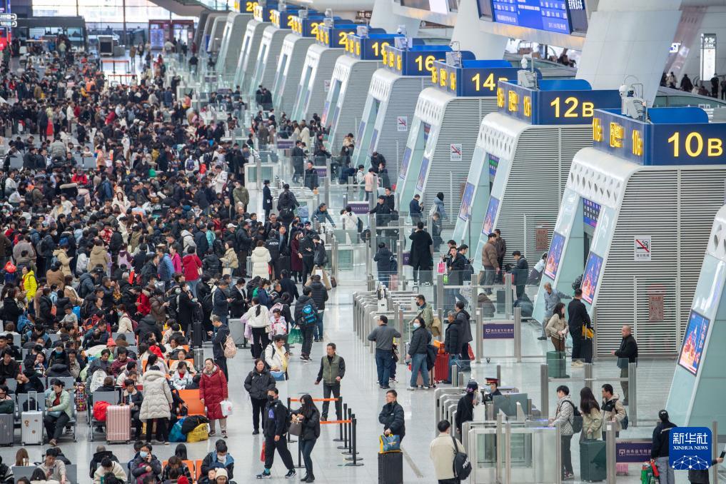 2024年2月17日,旅客在杭州东站候车大厅等待乘坐列车。新华社记者 江汉 摄