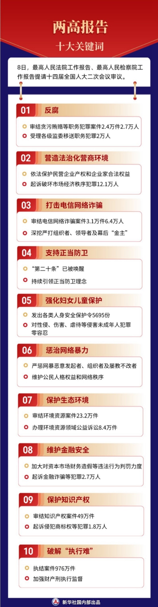 新华社北京3月8日电 题:十大关键词解读两高报告