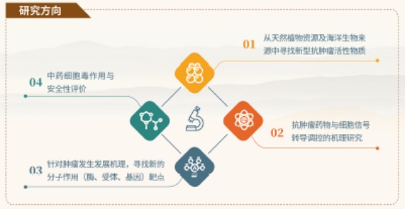 “肿瘤预防与抗肿瘤药物研究”重点实验室与中国协和医科大学药物研究所、国家自然资源部海洋药物研究所在抗肿瘤药物的基础研究和抗癌新药开发方面已经进行了多年紧密的科研合作。近年来,以我省的道地药材为立足点,寻找具有抗肿瘤作用的有效部位群或有效成分,坚持理论研究与应用研究并行,研发具有高效低毒的中药制剂,面向国家、我省战略发展需求,满足市场需要,坚持机制创新与技术创新并重,实现科技产业一体化,服务振兴经济发展。